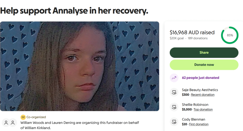 People have started raising money online to help Annalyse’s family. So far, they’ve collected about $10,600 (which is $16,000 in Australian money). The fundraiser page calls the attack “every parent’s worst nightmare.” The funds will help the family with expenses during this difficult time.