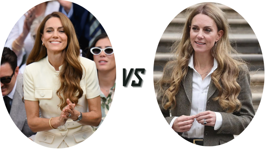 Comparison photos – Kate at Wimbledon in July vs. recent blonde look